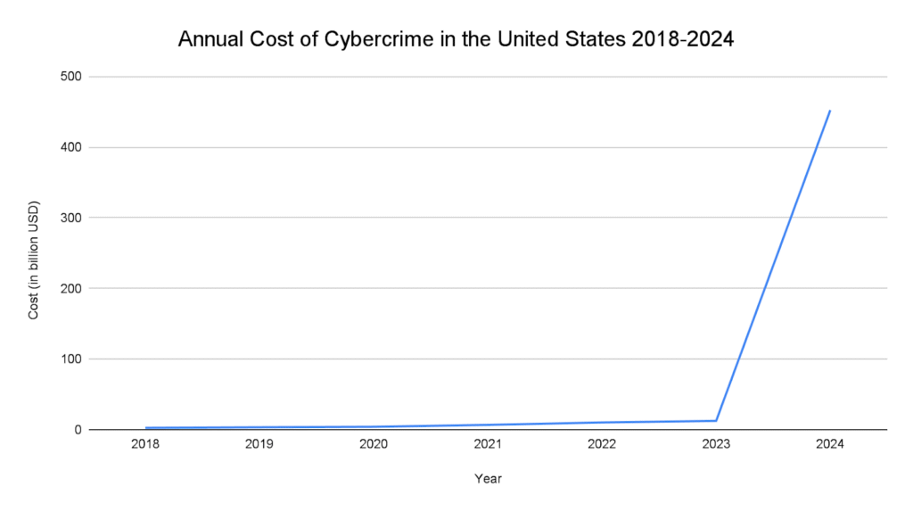 - In the U. S. cybercrime costs reached approximately $452.3 billion and some estimates also suggest cyber theft alone cost the U.S. economy over $350 billion